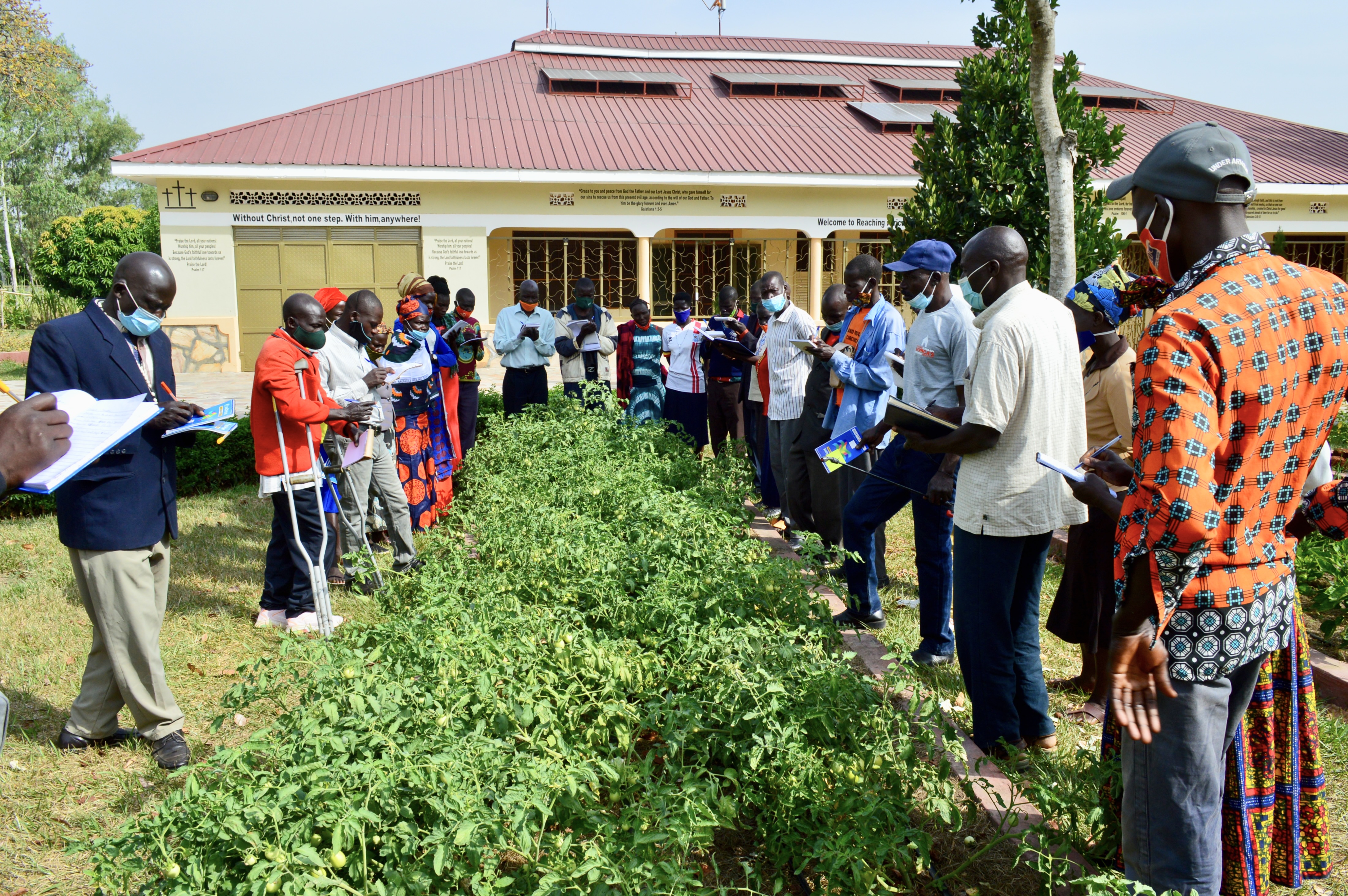 We had four full days ( Feb. 2, 3, 7 & 9) of agricultural training here at RAU’s demo farm and box gardens.  World Vision brought farmers from the nearby refugee settlements/& host communities. Along with the World Vision team, ZOA (a Danish NGO) and the OPM (Office of the Prime Minister) were represented. In the four days, we interacted with 688  farmers. Two farmers came as representatives of each of 334 Farmer’s Groups. We were told by World Vision that each group has 27-30 members. This means that, potentially, 9,018 farmers will be exposed to new farming practices and “Farming as a Business” principles, if the participants return to their homes and practice our motto of 2 Timothy 2:2 (Teaching faithful people who, in turn, teach others to teach others). ​