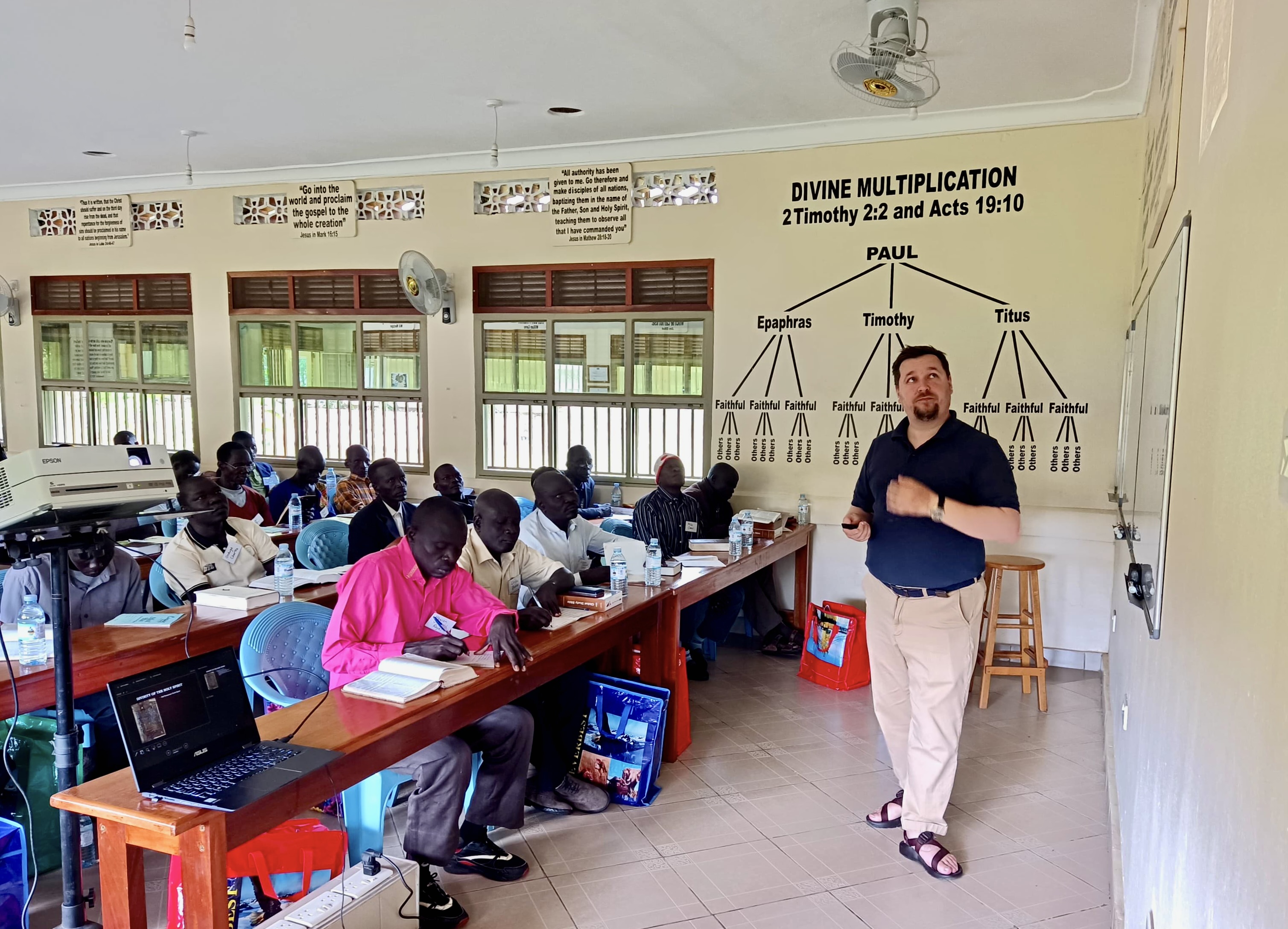 Just recently, we completed another retreat here on RAU campus with 49 pastors and leaders from the Metu Mountain churches, surrounding communities (such as Moyo, Adjumani and Eria), Yumbe and numerous Refugee settlements within Uganda for South Sudanese and refugees from The Republic of (North) Sudan. A teaching team from Maryland (Jason Van Bemmel, Bob Brown, Shawn Trautman and Philip Pugh) arrived safely with many wonderful resources for Pastors and leaders who took part in the 9 day retreat, covering Systematic Theology and Church History. On the Monday following the start of the retreat, Jacob took the teaching team up into the Metu Mountains to visit several of the churches that have been planted in partnership between Ayaa Baptist Church, Ijujo Baptist and RAU. Meanwhile, back at the campus, our Agricultural Production Officer, Odendi Zakeo and mission partner, Paul George, gave the retreat attendees a full day of learning on grafted mangoes and vegetable gardening (both classroom and hands-on). It was a marathon 9 days, but we pray that, out of the many topics that were covered, each one will take away something which equips them more and is an encouragement or source of strength.