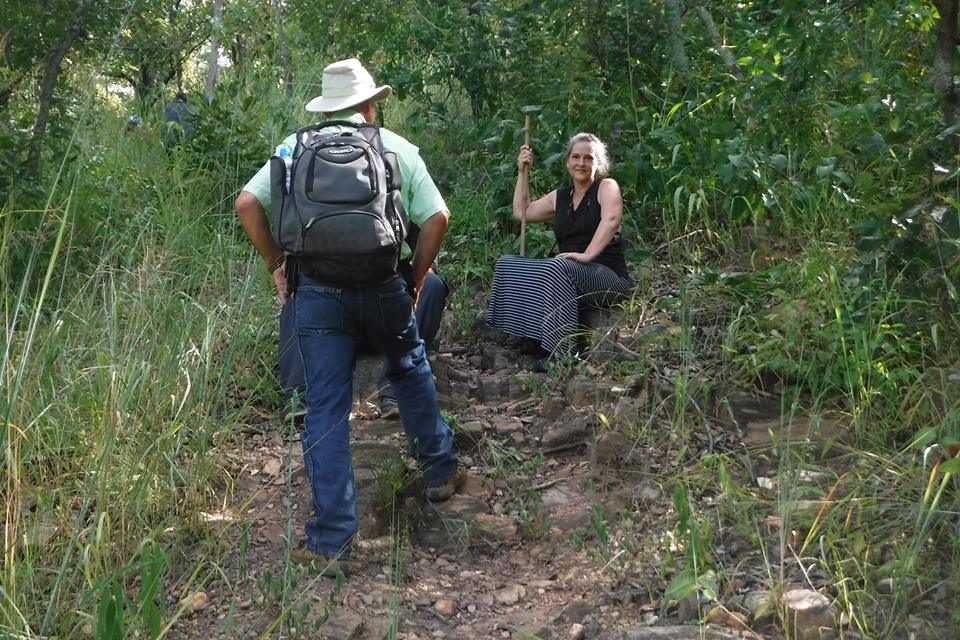 Pastor Tobias, guiding Preston and Laurel down the hillOne slip on a loose rock could mean a quick trip to the bottom of the hill