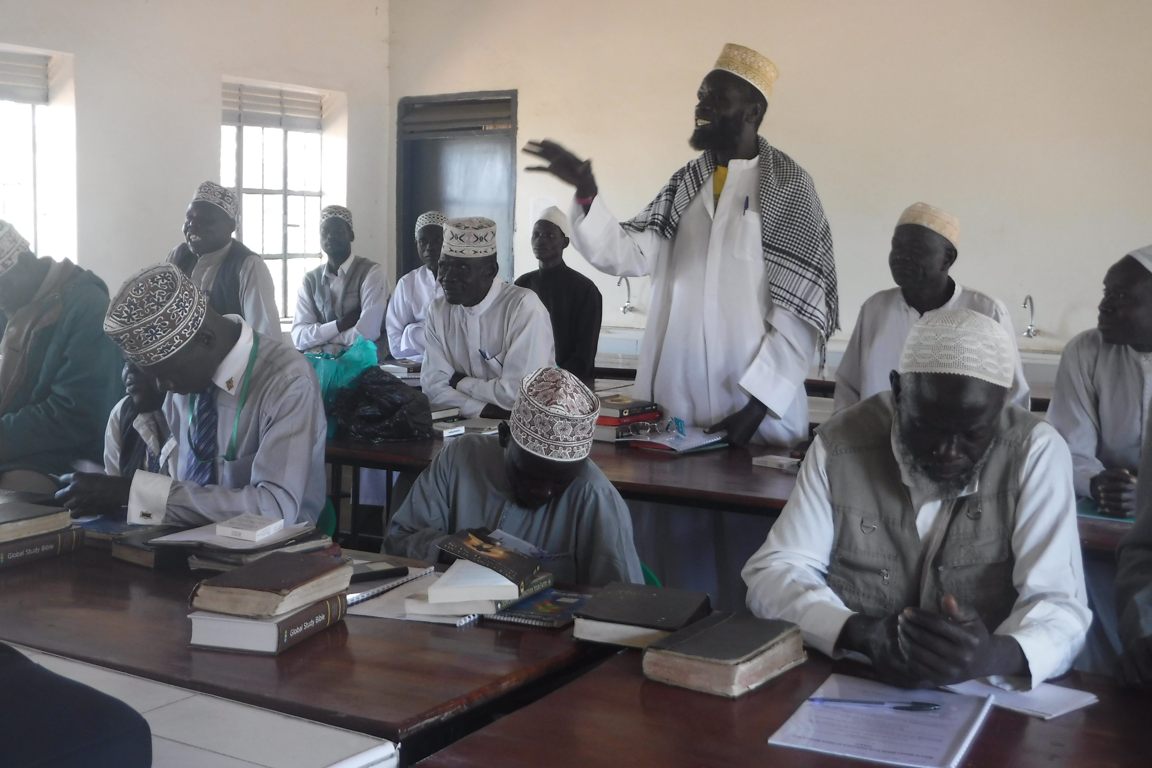 April 2, Jacob, Zorah and Pastor Henery set off for Obongi where Pastor Godfrey had arranged for a meeting with some of the Imams and other Muslims with whom Godfrey has been in dialogue. In past visits, RAU had been able to supply some literature to these men, including an ESV Study Bibles, a Arabic story book highlighting stories from the Bible, Seeking Allah, Finding Jesus (by Nabeel Qureshi) and others. They wanted to meet to discuss what they have been reading.