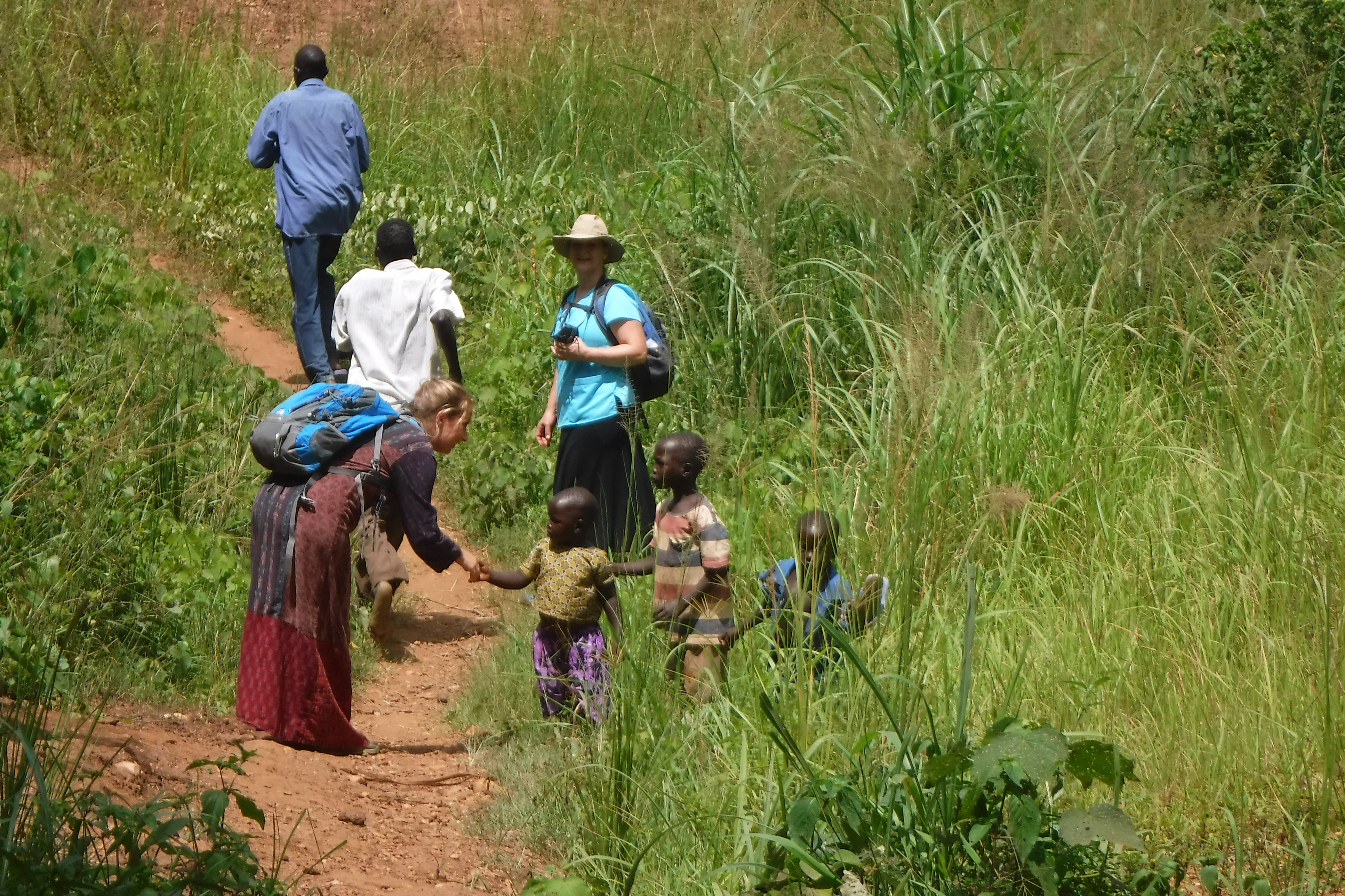 From there we drove as far as the Land Cruiser could take us (where the path narrowed and ascended to the village of Oyo) and “footed” the rest of the way. In Oyo we spent some time checking out a tukalu which Sam, the one who is moving there to shepherd new believers, wanted to rent. Little did we know that this tukalu, which was reported to be “just a short way beyond” Oyo, would turn out to be a good little hike in itself!